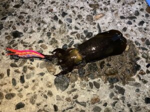 私の方は、アタリは経験出来ましたが、釣ることは出来ませんでしたが、同行して頂いた師匠は2杯のアオリイカを釣っておりました。