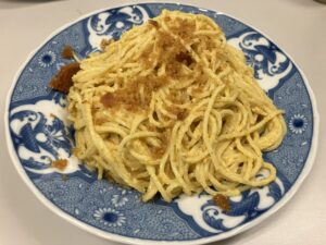 台湾からの学生さんがくれたカラスミを、加藤先生がカラスミパスタにしてくれました。思ったより塩分が少なく、美味しく頂戴できました。