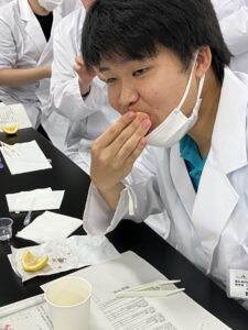 本年度から、味覚の実習には“ミラクルフルーツ”を使った実習を新たに組み込んでおります。よく知られている味覚の変調ですが、なかなか実際に経験した人は少ないです。