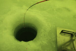 氷に穴を開け、新しく購入しましたリールと穂先を使っての釣りです。