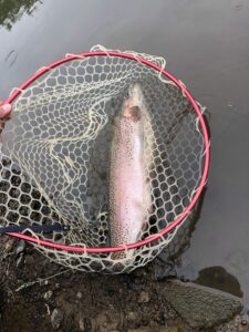 6月に入り、気候も過ごしやすくなってきましたので、知人と八幡平にある管理釣り場へ行ってきました。知人は初めてのニジマスの管理釣り場でしたが、写真のあるような40を超えるニジマスを釣っておりました。私の方は、ルアー・フライを両方やりながら、半日で10匹程楽しませて頂きました。どの魚も元気よく、岩手の自然の満喫できました。(MK)