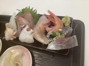 今回は、本町市場の中になる鮮魚店が運営されている食堂をご紹介頂きました。ノドグロが美味しかったです。