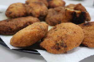 当分野の料理名人である加藤先生が、何やらラボで料理をしているな〜と見ていると、メンチカツを作ってくれていました。