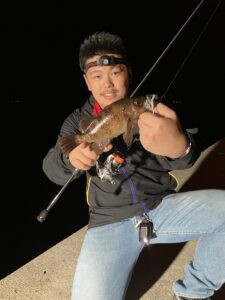 三陸はイカが最盛期です。 天気の良い週末でしたので、イカ釣りに出かけました。しかし、肝心のイカには出会えず、諦めていた頃に、清水君がグッドサイズなメバルを釣り上げました。 流石です。