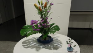 医大祭の中で、本学の華道部に所属する歯学部2年生の展示がありました。 あまり光量がない場所でしたので、画像にすると良さが消えてしまってるような気がしますが、素敵な展示でした。