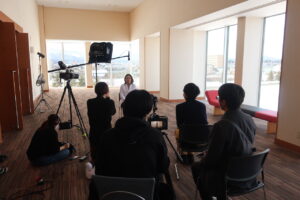 研究の動機などに関するインタビューを、バックに雄大な岩手山がみえる講堂で行いました。近日中に動画配信されるとのことです。